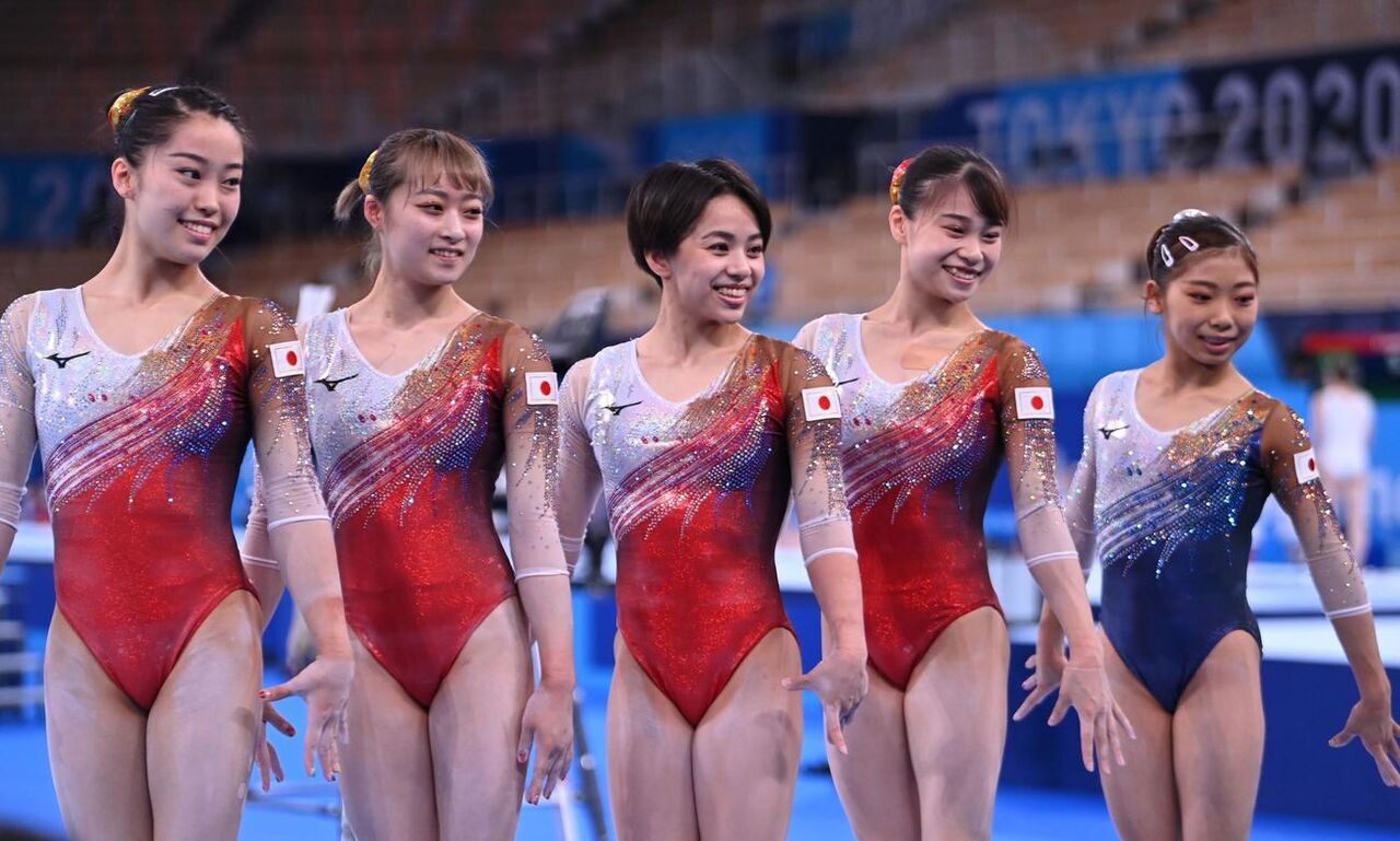 日本体操女子チーム、団体決勝へ向けてがんば